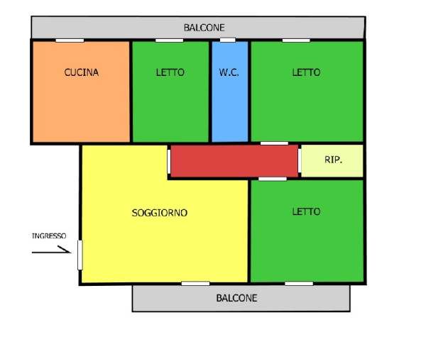 L'appartamento dispone di tre camere da letto, di cui due matrimoniali, perfette per famiglie o per chi desidera avere uno spazio extra per ospiti o un ufficio. Il bagno è funzionale e c'è anche un pratico ripostiglio per riporre tutto il necessario. Non dimenticare i due balconi, uno antistante e uno retrostante, dove poter godere di momenti di relax all'aria aperta.