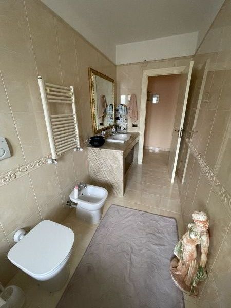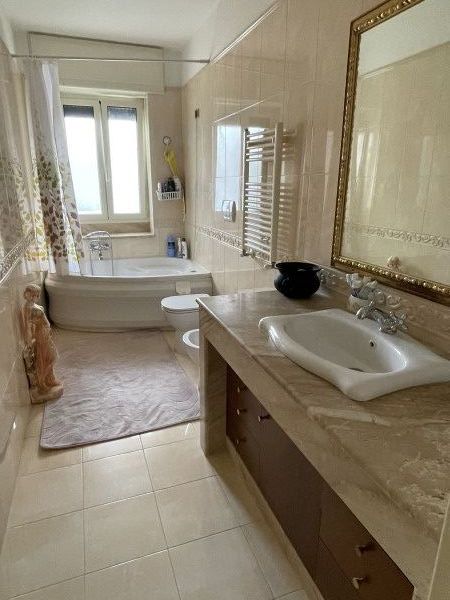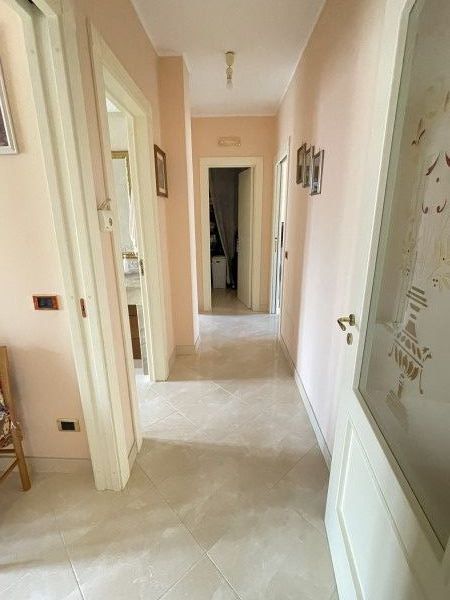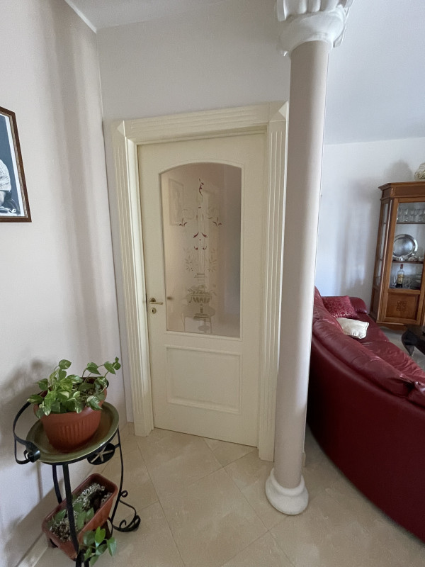 Le rifiniture interne risalgono al 2003 e includono pavimentazione in gress effetto marmo, infissi in anticorodal con vetrocamera, tapparelle elettriche e zanzariere. Per il massimo comfort, l'appartamento è dotato di aria condizionata nella zona soggiorno e nella camera matrimoniale, con predisposizione per ulteriori unità negli altri ambienti.